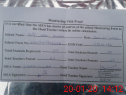 | Attendance Register | Head Teacher | MEA with School | Visit Proof |