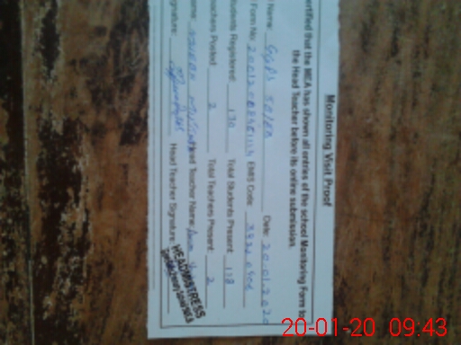| Attendance Register | Head Teacher | MEA with School | Visit Proof |