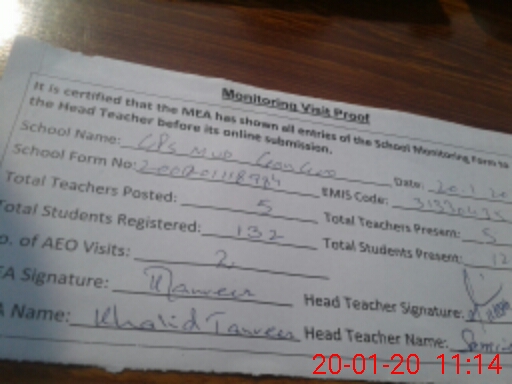 | Attendance Register | Head Teacher | MEA with School | Visit Proof |