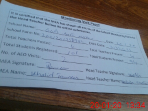 | Attendance Register | Head Teacher | MEA with School | Visit Proof |
