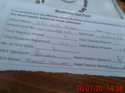 | Certified that this School was Inspected by the Undersigned MEA/DMO Today and the Information Stated Above is as Per Record. | |||||