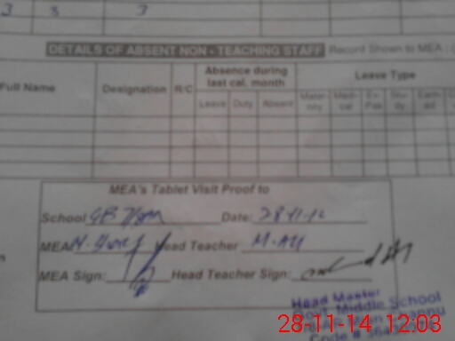 | Attendance Register | Head Teacher | MEA with School | Visit Proof |