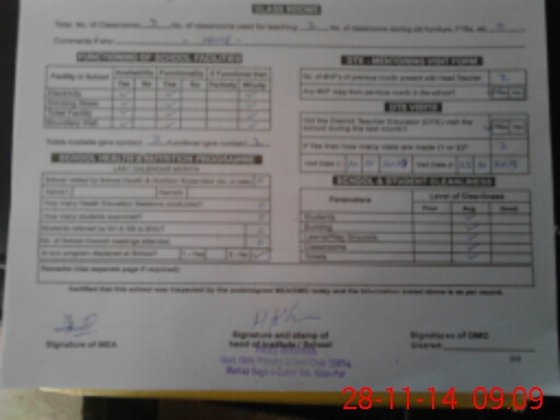 | Attendance Register | Head Teacher | MEA with School | Visit Proof |