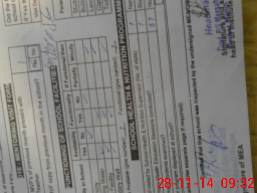 | Attendance Register | Head Teacher | MEA with School | Visit Proof |