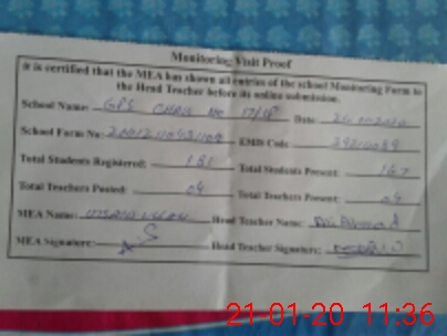 | Attendance Register | Head Teacher | MEA with School | Visit Proof |