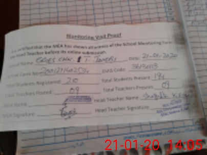 | Attendance Register | Head Teacher | MEA with School | Visit Proof |