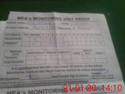 | Attendance Register | Head Teacher | MEA with School | Visit Proof |