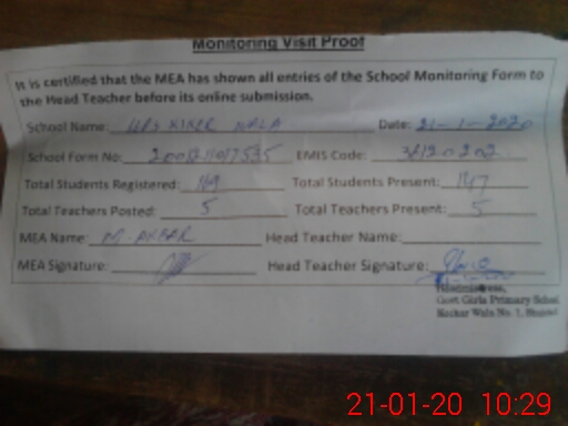 | Certified that this School was Inspected by the Undersigned MEA/DMO Today and the Information Stated Above is as Per Record. | |||||