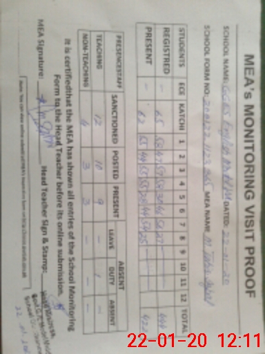 | Attendance Register | Head Teacher | MEA with School | Visit Proof |