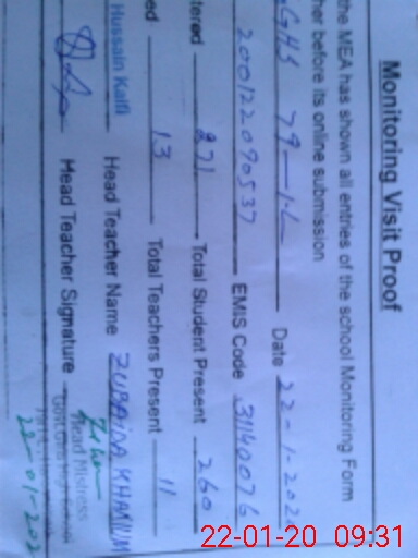 | EMIS Code: 31140076 | Name of School: GGHS 79/1-L HAROON ABAD | |||