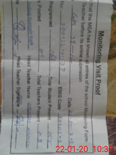 | Certified that this School was Inspected by the Undersigned MEA/DMO Today and the Information Stated Above is as Per Record. | |||||