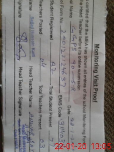 | Certified that this School was Inspected by the Undersigned MEA/DMO Today and the Information Stated Above is as Per Record. | |||||