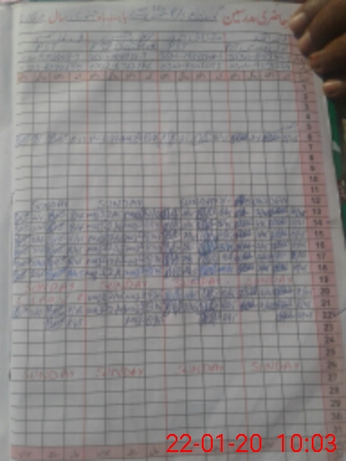 | CNIC | Full Name | Designation | R/C | Absence During Last Calender Month |