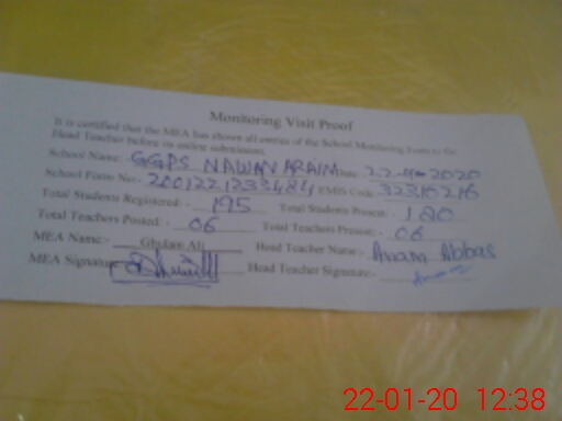 | EMIS Code: 32310216 | Name of School: GGPS NAWAN ARAIN | |||