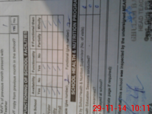 | School Visited by School Health & Nutrition Supervisor (No. of Visits) | Name1: | Imran Nawaz | Name2: | ||