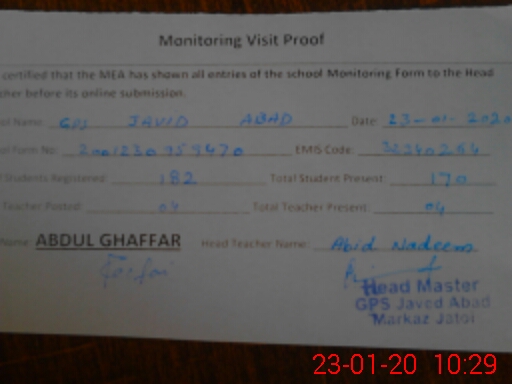 | EMIS Code: 32340264 | Name of School: GPS S JAVAID ABAD | |||