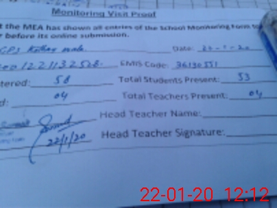 | Attendance Register | Head Teacher | MEA with School | Visit Proof |