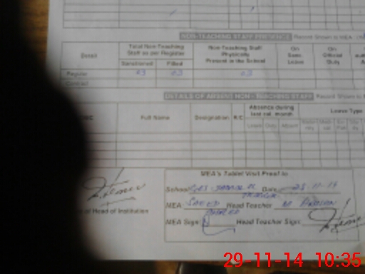 | Attendance Register | Head Teacher | MEA with School | Visit Proof |
