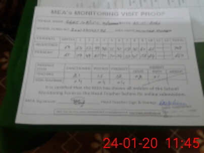 | Attendance Register | Head Teacher | MEA with School | Visit Proof |