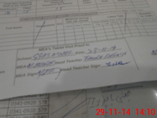 | Attendance Register | Head Teacher | MEA with School | Visit Proof |
