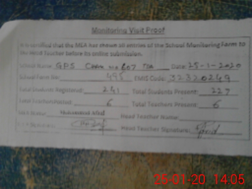 | EMIS Code: 32320249 | Name of School: GPS CHAK NO.607 TDA | |||