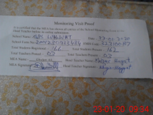 | EMIS Code: 32310087 | Name of School: GPS WALWAT | |||
