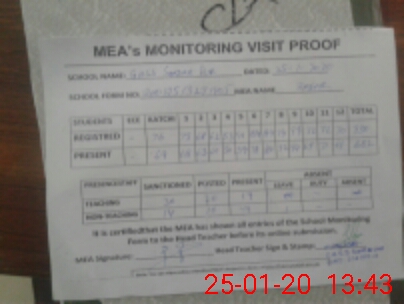 | Attendance Register | Head Teacher | MEA with School | Visit Proof |