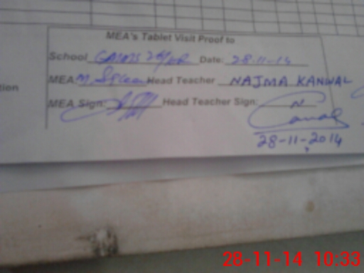 | Attendance Register | Head Teacher | MEA with School | Visit Proof |