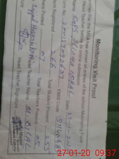 | EMIS Code: 31140485 | Name of School: GPS ALLAMA IQBAL COLONY | |||