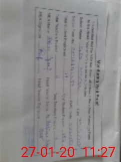 | Monitoring Date: 27-01-2020 | Start Time: 27-01-2020 11:08 AM | End Time: 27-01-2020 11:27 AM | Name of MEA: Za**** Iq**** BN**** | |