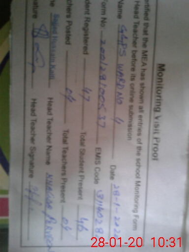 | EMIS Code: 31140282 | Name of School: GGPS WARD NO. 4 HAROON ABAD | |||