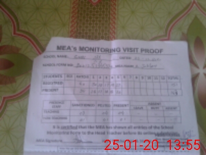 | Attendance Register | Head Teacher | MEA with School | Visit Proof |