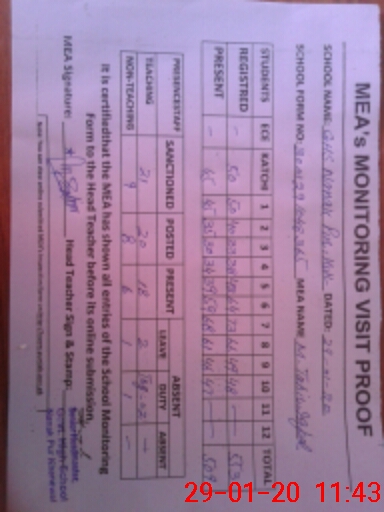 | Certified that this School was Inspected by the Undersigned MEA/DMO Today and the Information Stated Above is as Per Record. | |||||