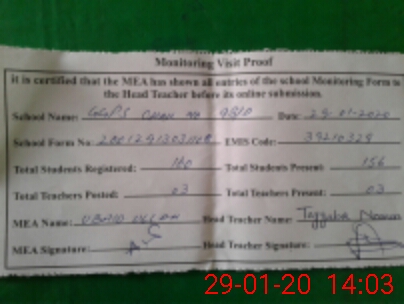 | Attendance Register | Head Teacher | MEA with School | Visit Proof |