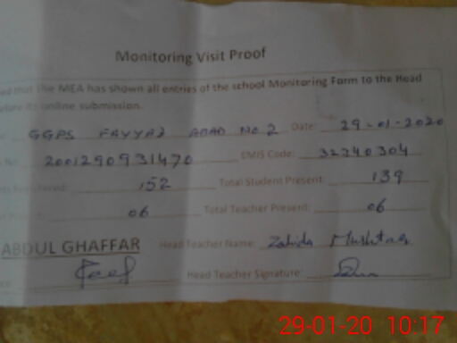 | EMIS Code: 32340304 | Name of School: GGPS FAYYAZ ABAD NO.2 | |||