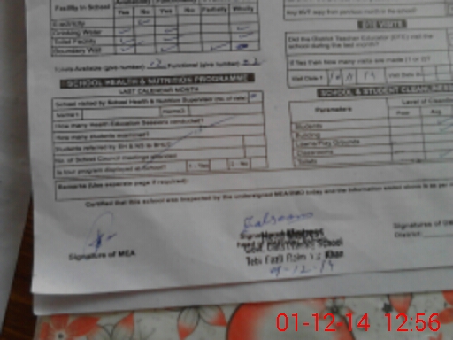 | Certified that this School was Inspected by the Undersigned MEA/DMO Today and the Information Stated Above is as Per Record. | |||||