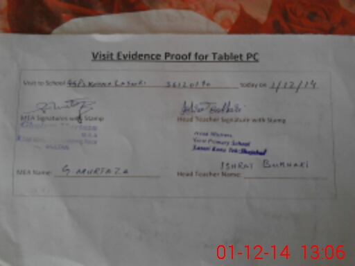 | Attendance Register | Head Teacher | MEA with School | Visit Proof |
