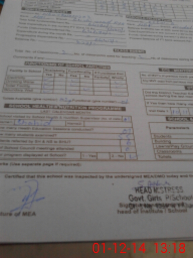 | Certified that this School was Inspected by the Undersigned MEA/DMO Today and the Information Stated Above is as Per Record. | |||||