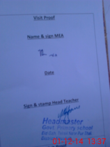 | Attendance Register | Head Teacher | MEA with School | Visit Proof |