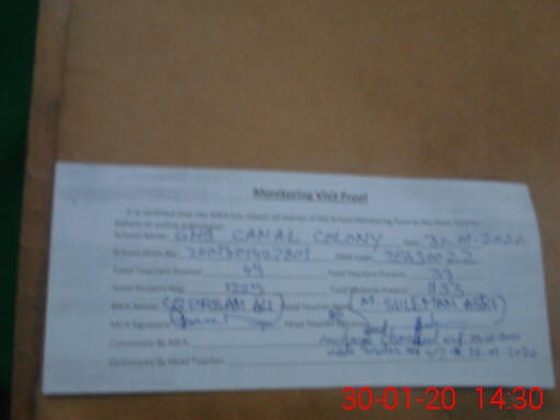 | EMIS Code: 35430022 | Name of School: GHS CANAL COLONY FAROOQ ABAD | |||