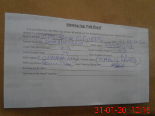 | EMIS Code: 35430548 | Name of School: GPS DERA GHULAM GHOUS | |||