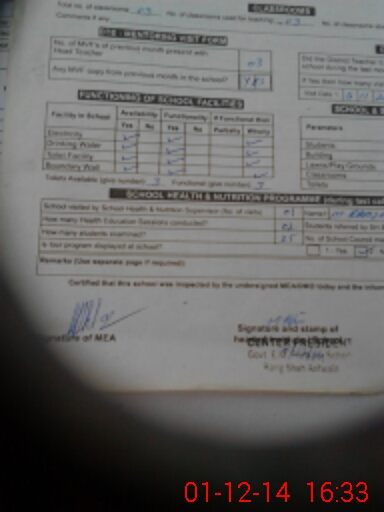| Certified that this School was Inspected by the Undersigned MEA/DMO Today and the Information Stated Above is as Per Record. | |||||