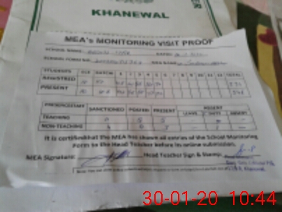 | Attendance Register | Head Teacher | MEA with School | Visit Proof |