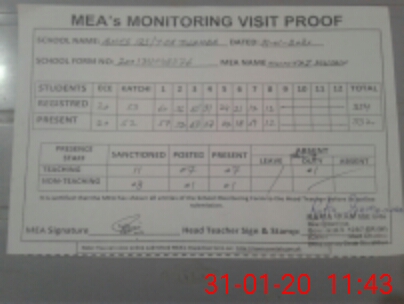 | Certified that this School was Inspected by the Undersigned MEA/DMO Today and the Information Stated Above is as Per Record. | |||||