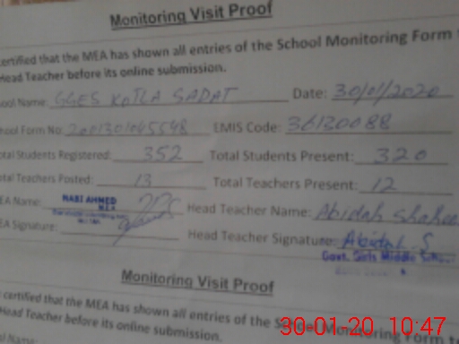 | EMIS Code: 36130088 | Name of School: GGES KOTLA SADAT NEAR SADIQ ABAD MULTAN | |||