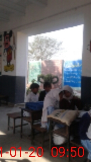 | Total no. of Classrooms: 2 No. of Classrooms Used for Teaching: 2 No. of Classrooms Storing Old Furniture, FTBs, etc: 0Comments if Any: 09 student are un admitted in kachi class |