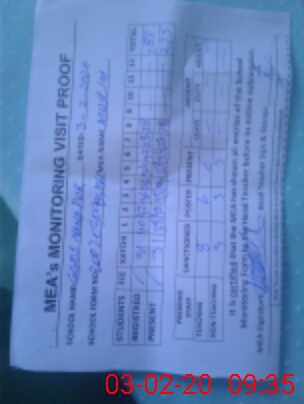 | Certified that this School was Inspected by the Undersigned MEA/DMO Today and the Information Stated Above is as Per Record. | |||||
