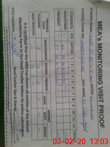 | Certified that this School was Inspected by the Undersigned MEA/DMO Today and the Information Stated Above is as Per Record. | |||||