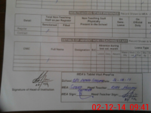 | Attendance Register | Head Teacher | MEA with School | Visit Proof |