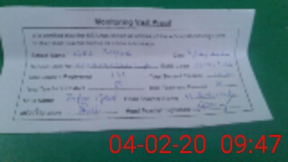 | Monitoring Date: 04-02-2020 | Start Time: 04-02-2020 09:28 AM | End Time: 04-02-2020 09:47 AM | Name of MEA: Za**** Iq**** BN**** | |